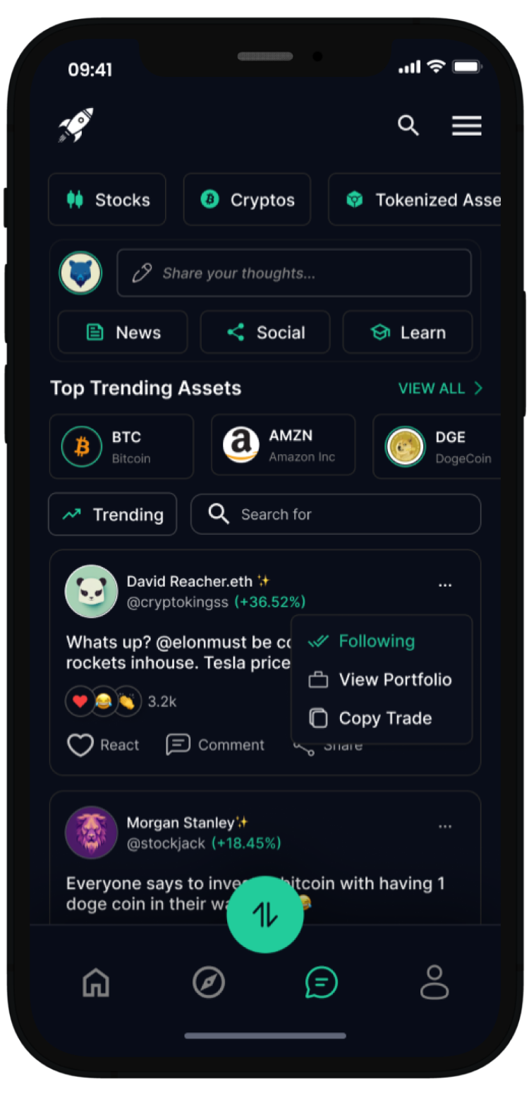Join a global community of investors trading stocks, cryptos, and investing in their favorite video games, music, and films – all while having fun!
